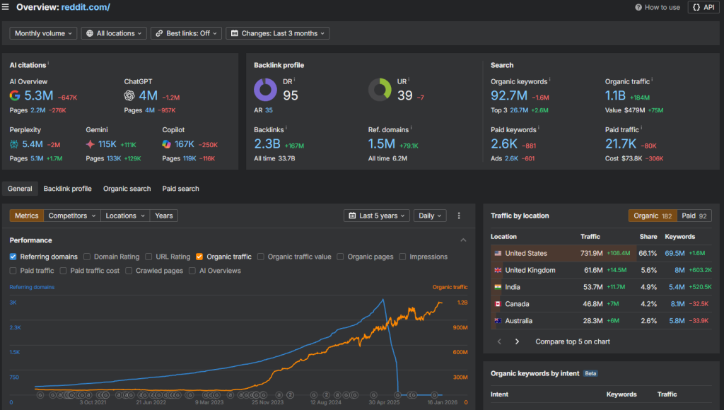 Anyway, Reddit is now a behemoth and gets an insane amount of monthly traffic from Google. It is also very highly cited in pretty much every AI.